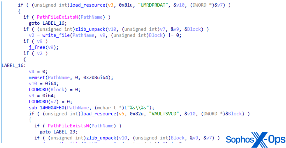 In this case we did recover the malicious loader, so we know that it decompresses the content of wuapi.dat and mprapi.dat, then calls StartEngineData export from both of them.