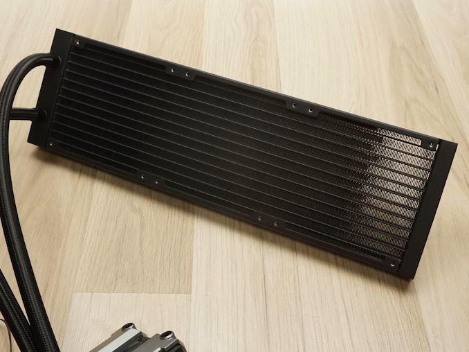 The Poseidon Ultra 360 ARGB cooler from Cougar maintains a design typical of all-in-one (AIO) liquid coolers, consisting of a single radiator, two hoses, and a block that integrates the CPU contact plate with a compact liquid pump. Cougar went with typical rubber tubing with an external nylon sleeve for added mechanical protection. The fittings are plastic, as is the case with the majority of AIO coolers nowadays.