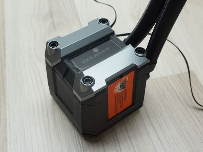 Cougar’s design efforts are particularly evident in the main block assembly. Except for the contact plate, the rest of the assembly is made of plastic and acrylic, with Cougar making severe efforts to make the block as visually appealing as possible. The top of the block assembly can be removed if turned counterclockwise softly, allowing the user to adjust the logo’s orientation (yes, the large hex screw heads are fake). The 90° hose fittings can swivel, adding some flexibility to the installation process.